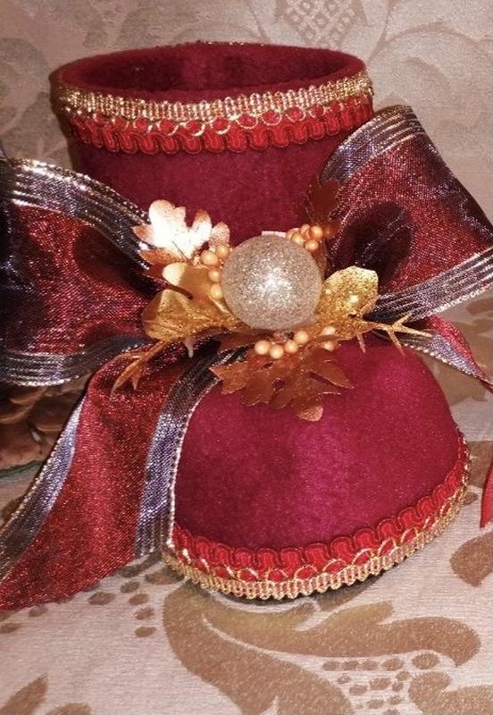 Hand made. In stock 3 items: 1. Red boot with gold decorations. Height 16 cm, width 10 cm. 2. Blue boot with decorations . Висота 12 см, ширина 10 см. 3. Red boot with decorations. Height 16 cm, width 10 cm. Ціна за 1 шт