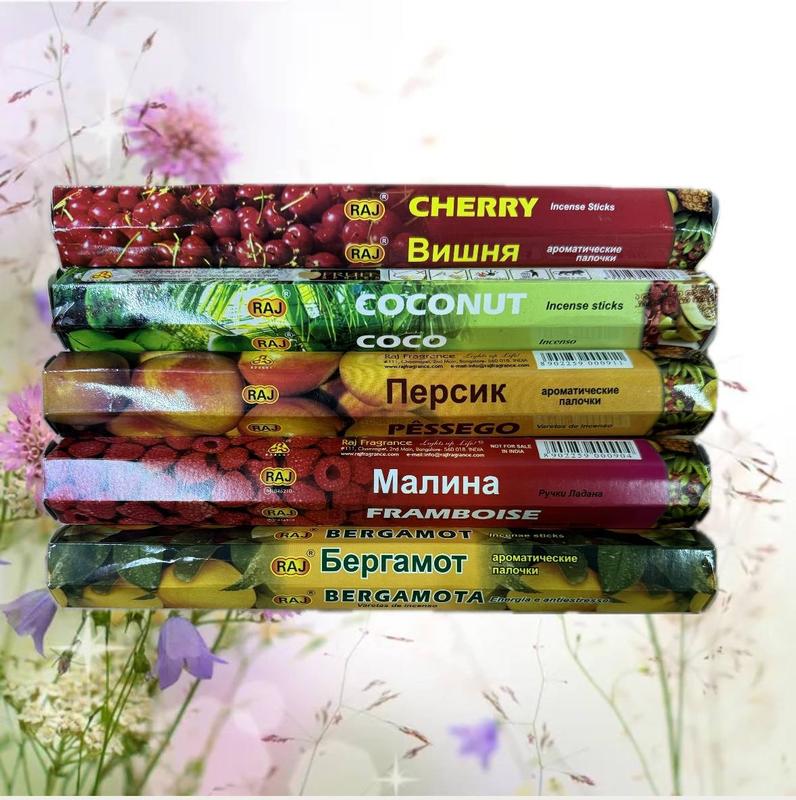Набір пахощів 5 шт (вугільні ароматичні палички) вишня, кокос, персик,Малина,бергамот