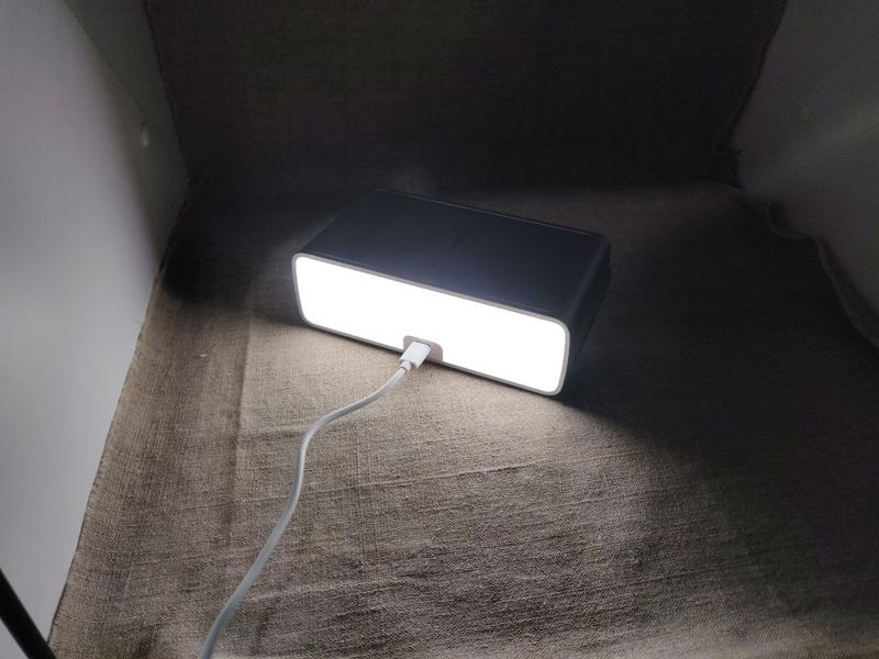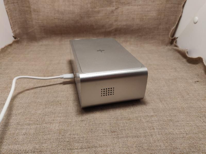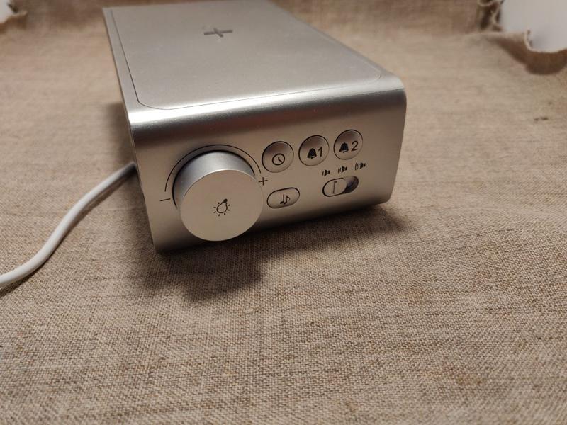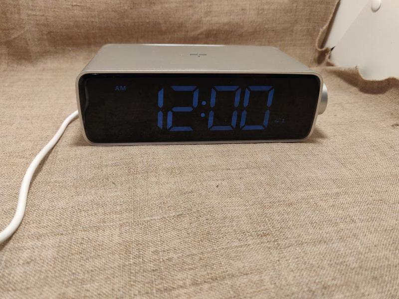 Показує час, можна поставити будильник, взаді годинника є лампа.