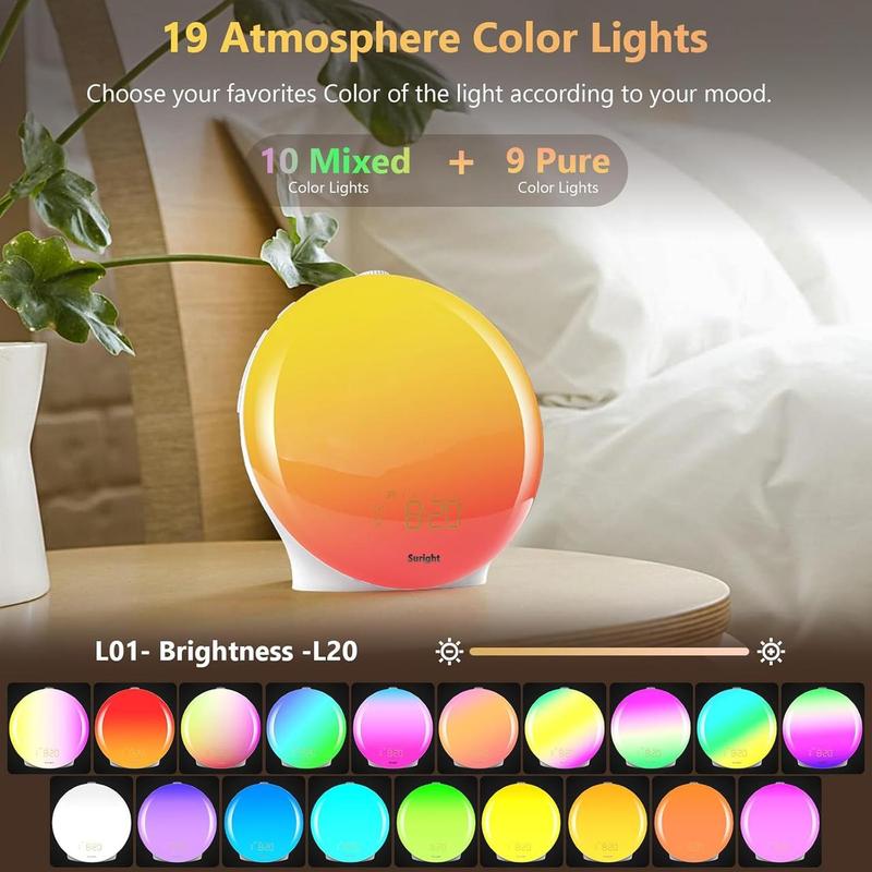 【19 режимів освітлення та 16 мільйонів кольорів】 Світловий будильник включає 9
