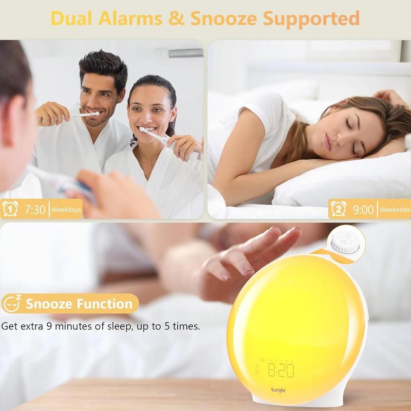 повноекранний будильник з імітацією сходу/заходу, два будильники, повтор