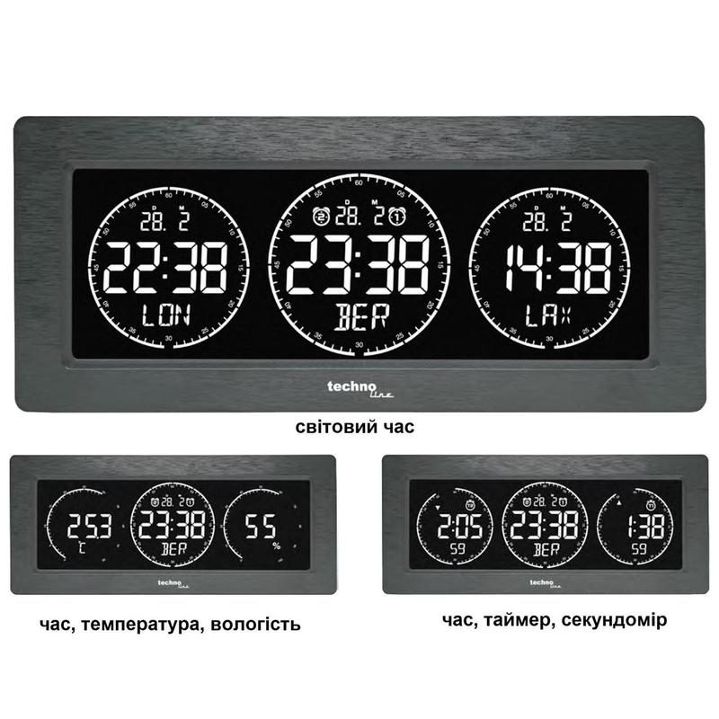 годинник із світовим часом, будильник, термогігрометр і таймер. На широкому