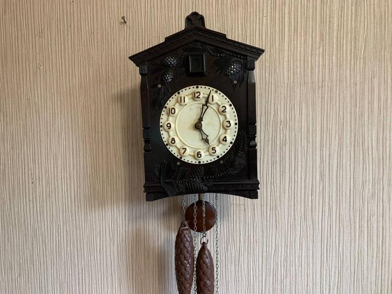Чудовий годинник прекрасно підійде в будь-який інтер'єр, стане гарним подарунком на свята. Годинник в повної комплектації і відмінному робочому стані, 70-ті роки, (період СРСР). Часовий механізм відрегульований, проведено профілактику, проведено "випробування". Зозуля "співає" кожні півгодини один раз і кожну годину, відповідно з боєм. Завод годинника здійснюється шляхом підтягування нагору двох гир, підвішених на кінцях ланцюгів, вистачає на добу. По мірі ходу годин, гирі опускаються вниз. Коли гирі підтягнуті вгору, відстань між ними і корпусом потрібно дотримуватися приблизно 15 см, не підтягувати їх до упору. На ніч можна зупинити годинник-зупинити рух маятника. До годинників додається ксерокопія оригінальної інструкції та відео роботи годинника. При необхідності надаю усну консультацію по користуванню годинником.