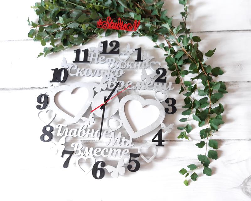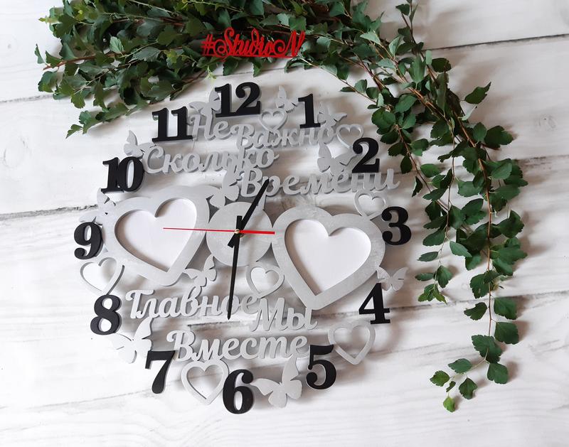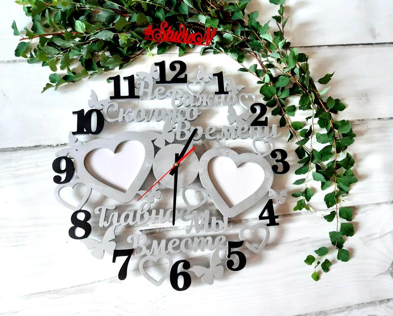 Рамка-годинник "Ми разом" 50х50 см плавний хід механізму,рамки сердечка 153х136 мм годинник ручної роботи Тип циферблата: Стрілочний Розміри корпусу: 50 см Матеріал корпусу: Дерево Матеріали: дерево, натуральне Дерево, фанера 6 мм Розмір: Висота 50 см Ширина 50 см Цінителів стильних елементів в дизайні приміщення обов'язково вразять годинник з дерева на стіну, Такі подарунки не можуть залишитися без уваги: вони обов'язково займуть гідне місце в інтер'єрі квартири або будинку і навіть стануть його родзинкою! Особенность часов – тихий механизм, который отсчитывает точное время фактически беззвучно. Благодаря этому, наши настенные часы из дерева купить можно даже в то помещение, где важное значение придается тишине.