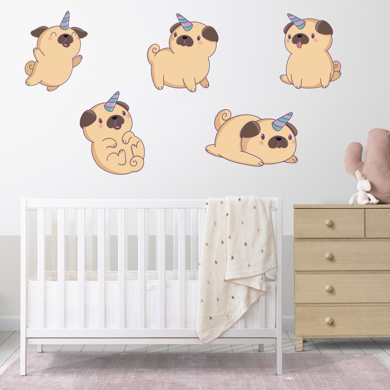 Набір наклейок на стіну в дитячу кімнату "щенки-єдиноги" (5 елементів)