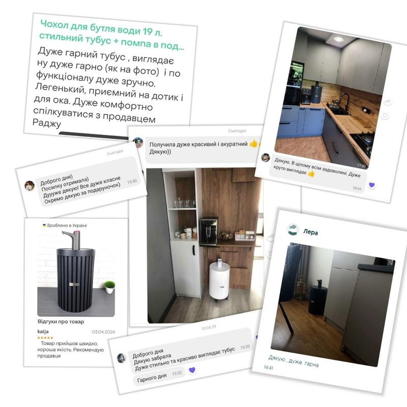• Естетика та стиль: Елегантний та стильний дизайн тубусу в чорному матовому дизайні не лише приховує синій пластик, але й надає вашому джерелу води неперевершений зовнішній вигляд, ідеально вписуючись у ваш інтер'єр.