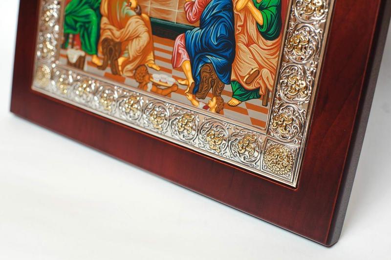 Основания иконы - МДФ покрытый шпоном ореха. Икона покрыта специальным лаком,