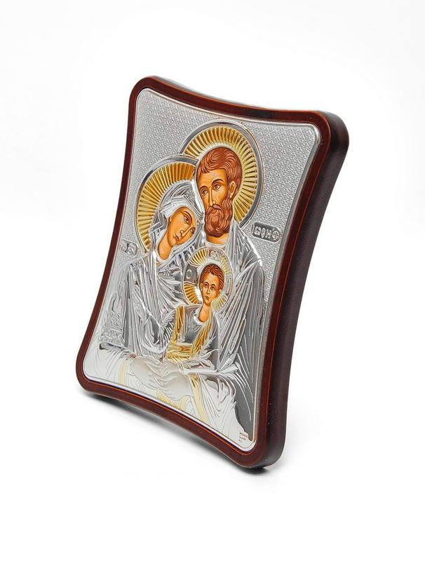 виготовлена із МДФ покритого шпоном дерева. Ззаду ікони є відкидна ніжна та