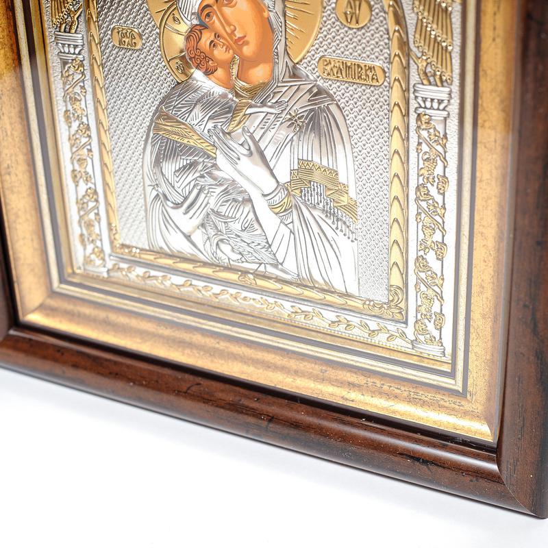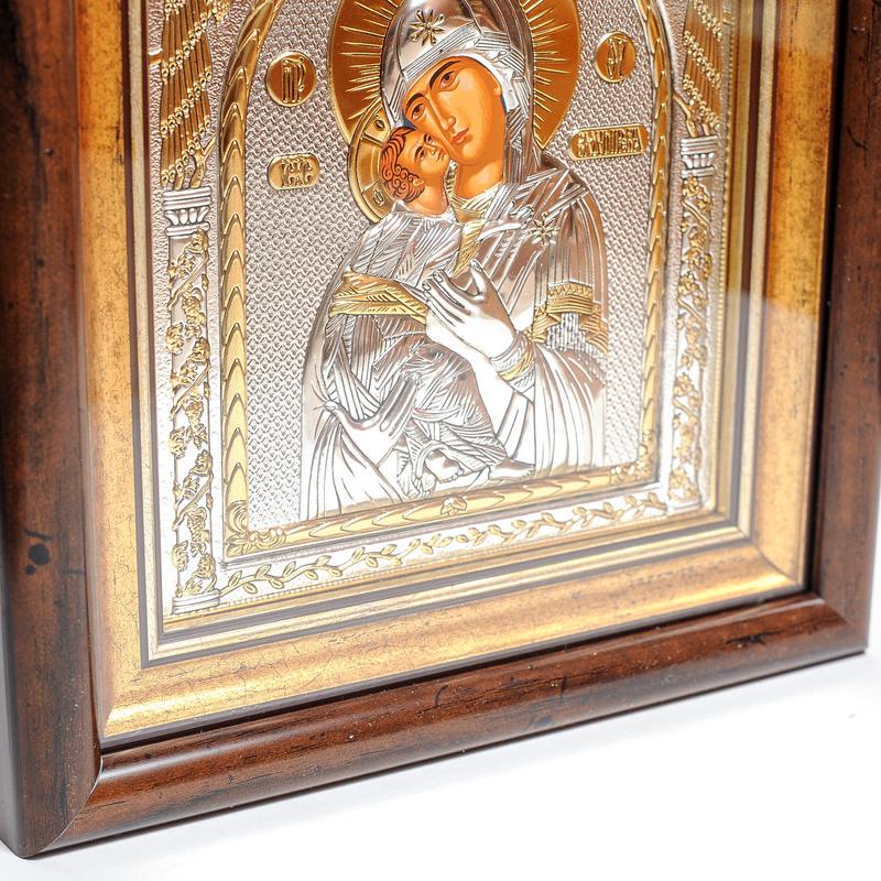 Серебряная икона Владимирская Божья Матерь под стеклом