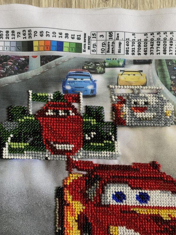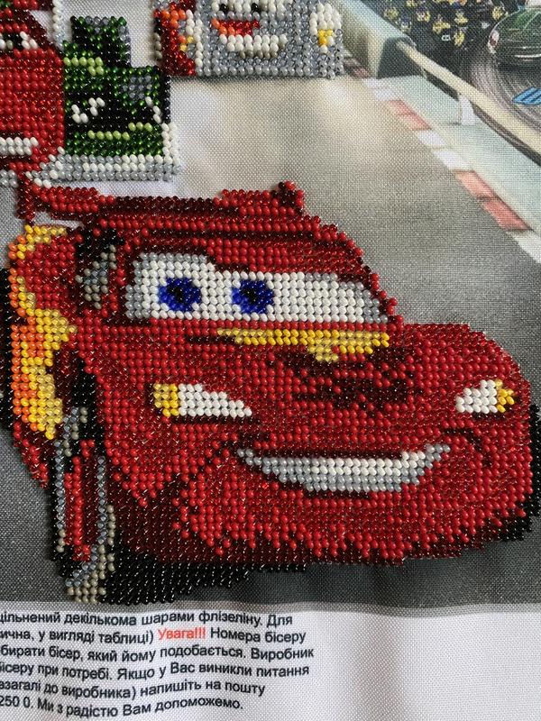 Дитяча картина вишита бісером «Маквін».Загальний розмір 30*27,розмір самої картинки 24,5*19.5.Ручна робота.