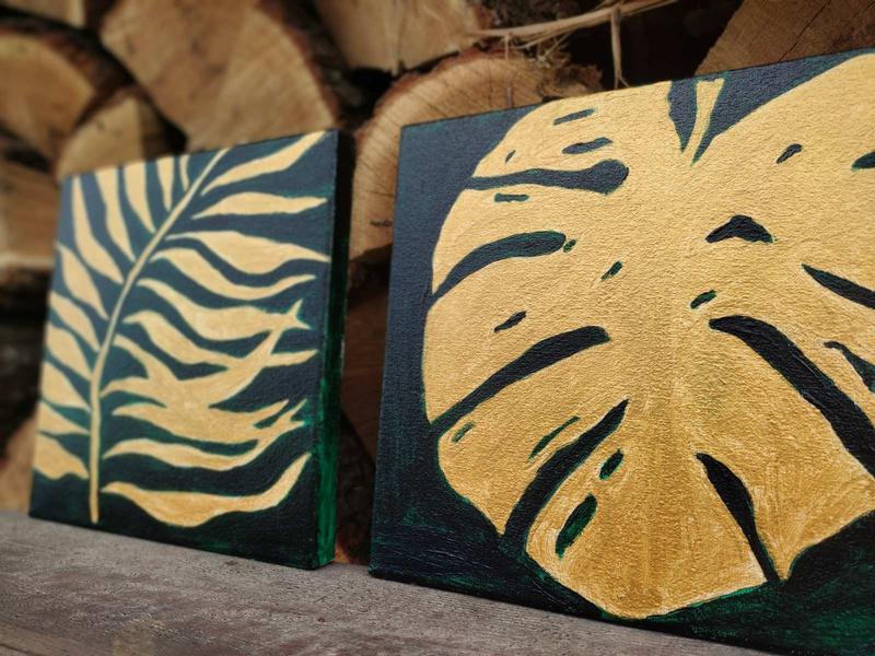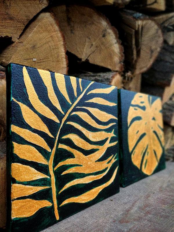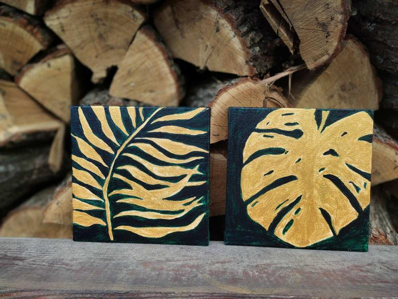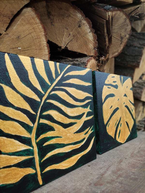 Велика інтер`єрна картина акрилом "tropical", постер, ручна робота, золото