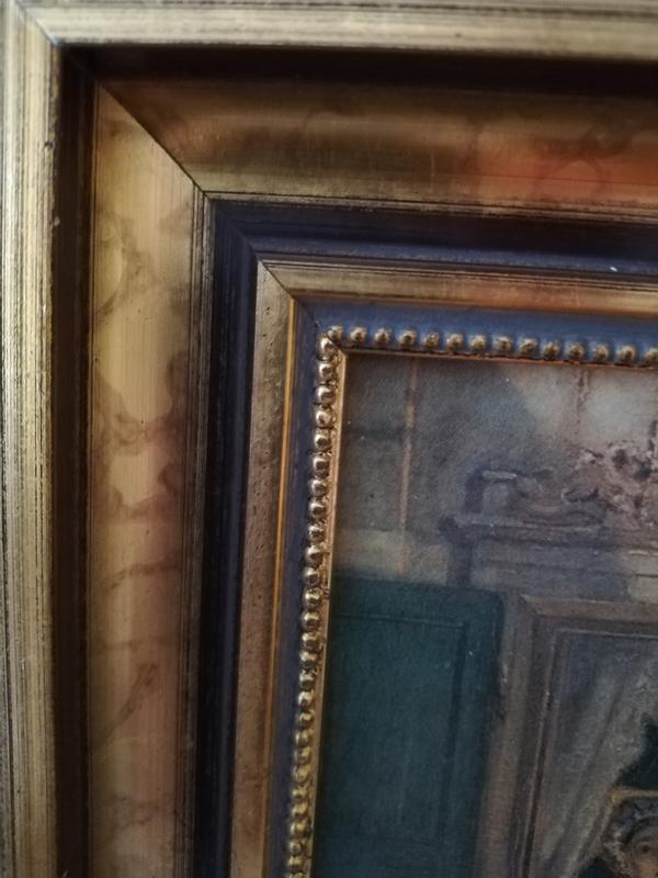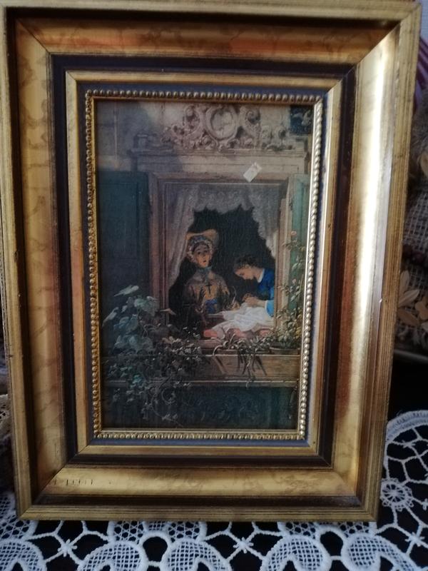 Картина в дерев'яній рамці "Любове письмо" Німеччинарепродукція за мотивами німецького художника Карл Шпіцившикарна старовинна рамка рахмер 20 см.х15см.