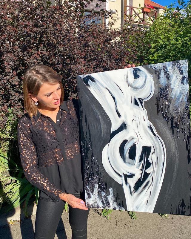 Картина написана акрилом, епоксидною смолою з додаванням дзеркальної та скляної крихти. В житті крихта дуже гарно переливається та сяє. Для почіновувачів жіночого тіла та естетики ) Розмір 60*80