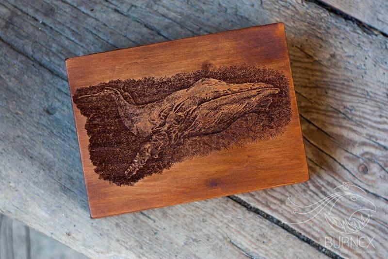 Синій кит - найбільша тварина з нині живуть не тільки в океані, але і взагалі в морі. Приголомшливі тварини. Їм я присвятив одразу 3 шкатулки. Ця друга з них Скринька "Blue Whale 2". Дерево, малюнок виконаний за допомогою лазерного гравіювання за оригінальними ілюстраціями. Розмір 16х12х5.5 см, всередині фетр.