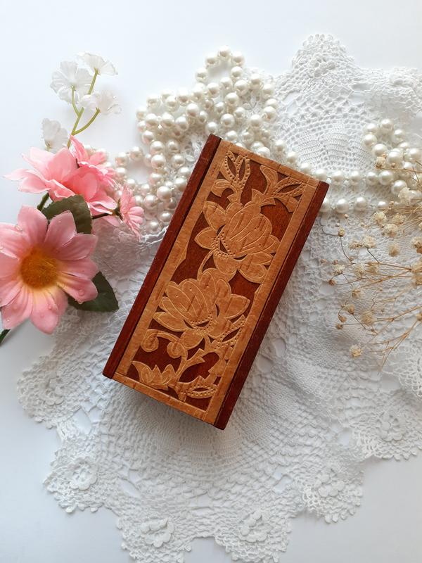 📿Частичка ушедшего прошлого, созданная с душой в советское время Эксперементальной фабрикой художественных изделий "Великоустюгские узоры" (Вологодская область), - небольшая лакированная шкатулка, декорирована резьбой на бересте! Шкатулочка сочетает в себе практичность и изысканную красоту! Советский винтажный предмет декора с широким функциональным назначением. Такую милую деревянную коробочку мужчины с удовольствием использовали в быту как табакерку или коробочку для муштука, а хозяюшки для хранения недорогой бижутерии, россыпи пуговиц, бусин, булавок и прочих мелочей. Шкатулка выполнена из натурального дерева, покрытого плотным слоем лака, вручную декорирована тонкой берестяной резной пластиной. Милая вещица с легкой ноткой ностальгии, которая с удовольствием прослужит Вам еще много лет, скрасив быт!💎 Небольшая, размер: 12 х 6 х 4 см. На донной части шкатулочки остатки бумажной этикетки. Состояние хорошее, по фото.