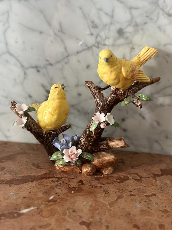 Художня робота,статуетка "корівка з кавуном і пташками"кераміка