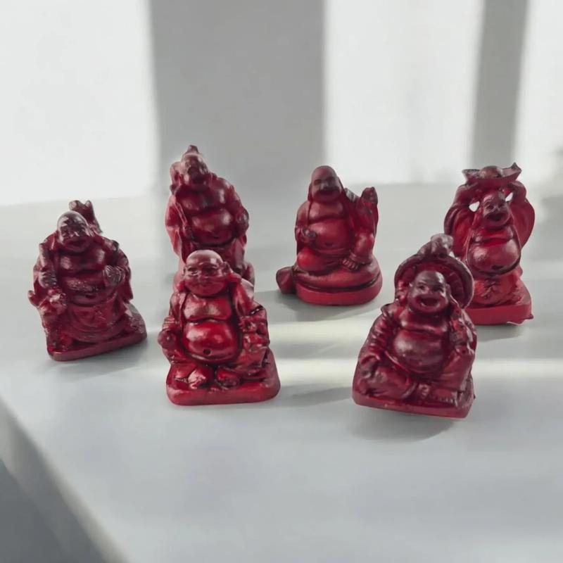 Опис: Набір із шести мініатюрних статуеток, що сміється Будди "Хотея", кожна з