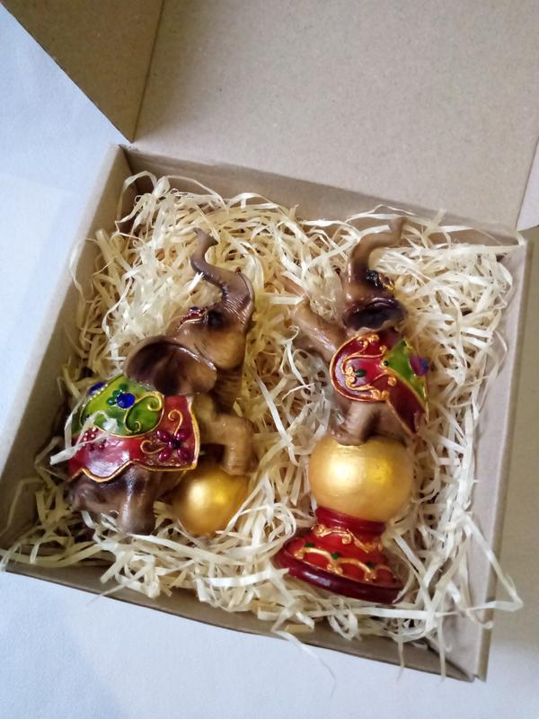 Два слона грошові. Слон-талісман з піднятим вгору хоботом, символ успіху і процвітання, матеріального достатку. розмір 15*5,5 см; 12*6,5 див.
