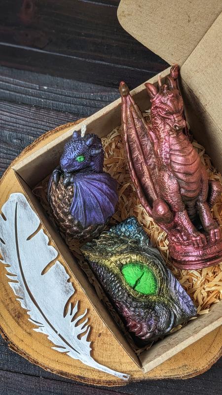 Крутий набір з трьох свічок у вигляді драконів. Ці міфічні створіння відомі по всьому світу з давніх давен. І саме 2024 рік - рік Дракона. А тому його символіка буде дуже в тему ♥️