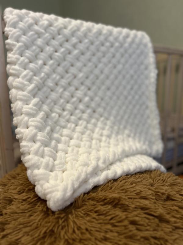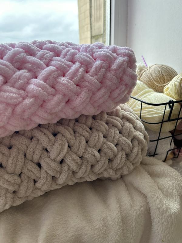 Плед ручної роботи з плюшевої пряжі ,теплий , приємний до тіла ,гіпоалергений