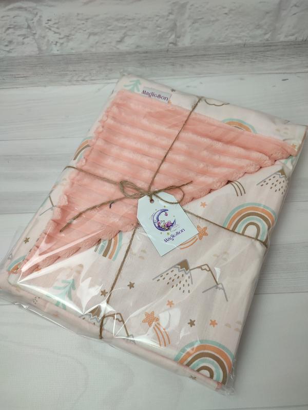 Плед в коляску , ліжечко , на виписку Тканина плюш , велюр , ранфорс , ранфорс з глітером Можна робити конвертом , в деяких моделях є бант в подарунок розмір 100 х 80Вік 0 - 5 років Для немовлят В різних кольорах і моделях
