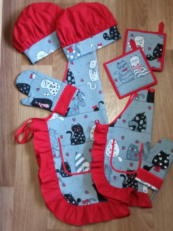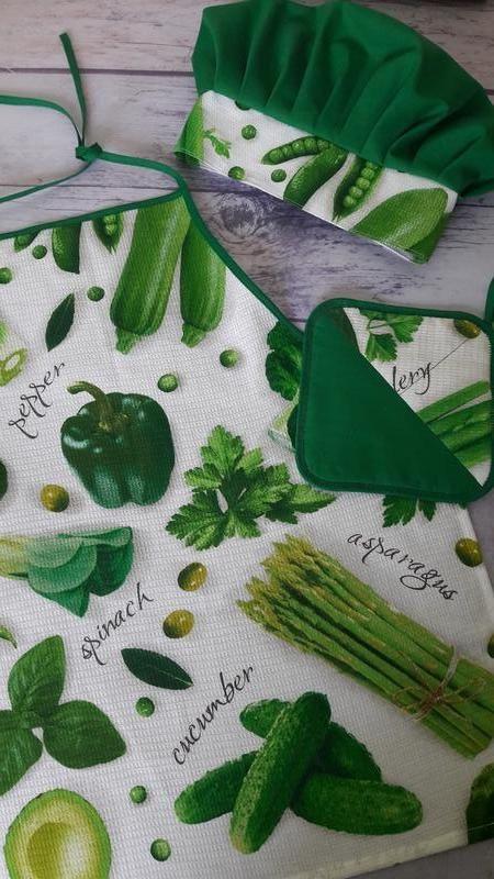 Доречі, окрім звичного фартушка та кухарського ковпачка, подібний комплект завжди можна доповнити шопером для покупок, кухонним рушничком, нарукавниками або прихватками. Також за бажанням замовника можна змінити модель фартушка, додати кишені, волани, а замість ковпачка пошити косиночку, солошку або бандану.