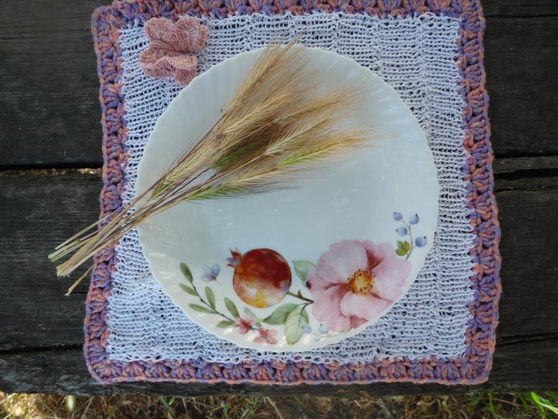 Виконана з ниток у пряжі Ірис, натуральна зі 100% бавовни. На краях використаний акрил.