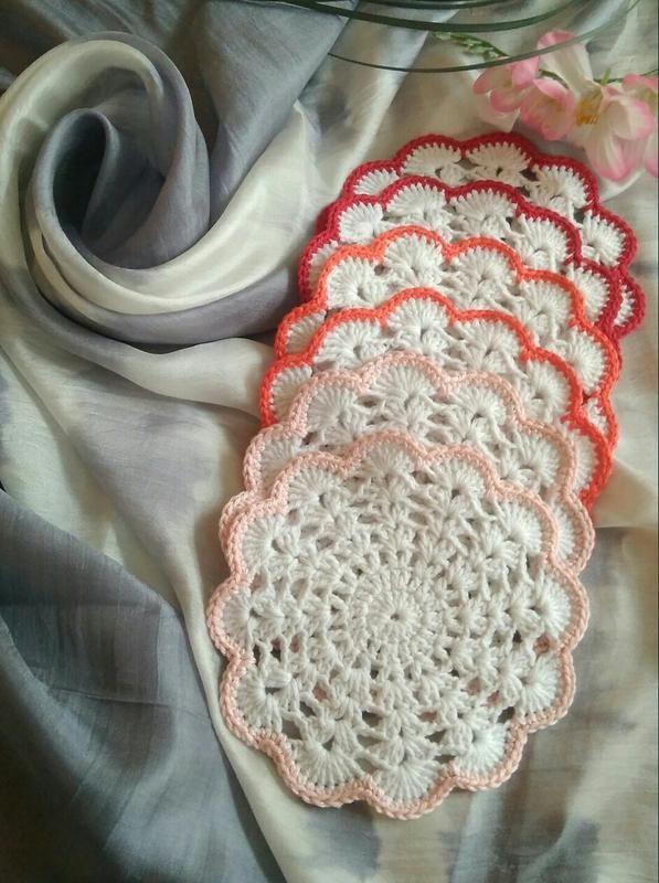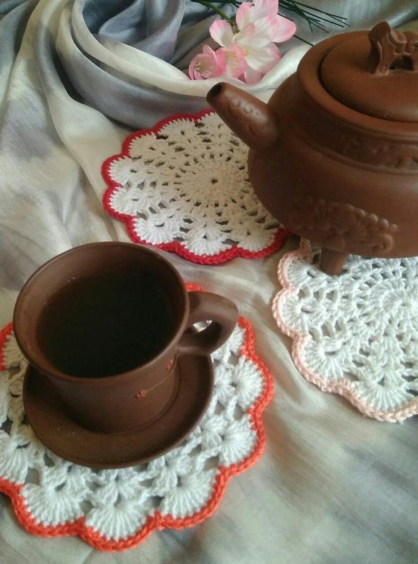 Сервірувальні серветки під гарячі кухлики з чаєм або кавою створять затишок і гарний настрій. Ажурні міні-серветки можуть стати приємним і корисним подарунком для ваших близьких, друзів, співробітників. Набір з 3-х серветок 200 грн. Набір з 6-ти серветок: 380 грн. Склад: 100% бавовна Розмір: d 13 см