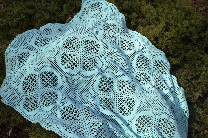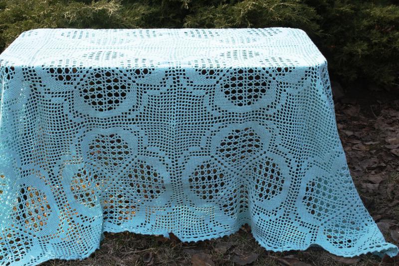 Скатертина бірюзового кольору виконана гачком з ажурних мотивів. Ориганальная серветка для великого столу або чудове прикраса журнального столика! склад: бавовна - 70%, льон - 30%
