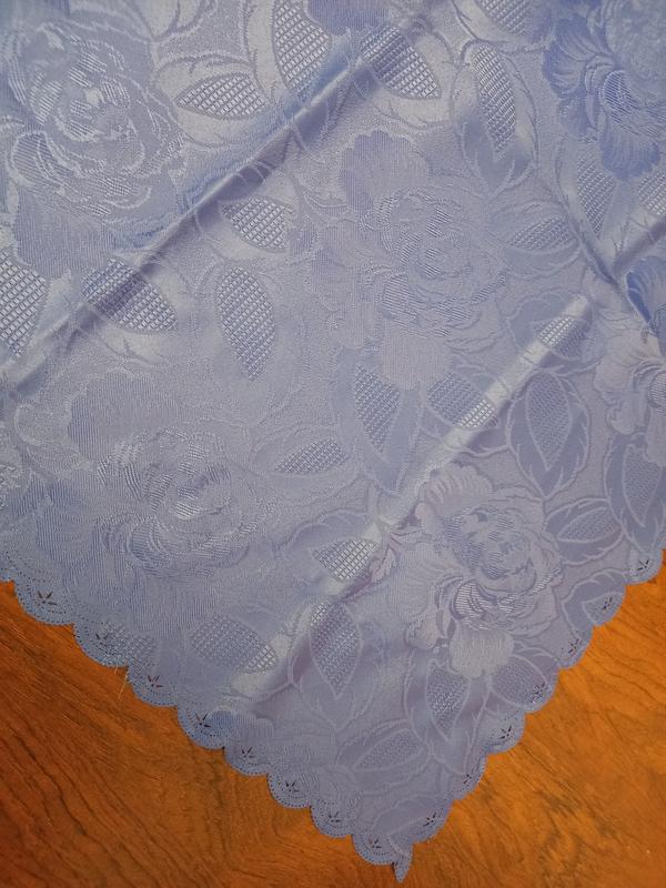 Продам красиву двосторонню скатертину.Розмір 76/78см.Колір ніжно-синій,з двох сторін однакова.