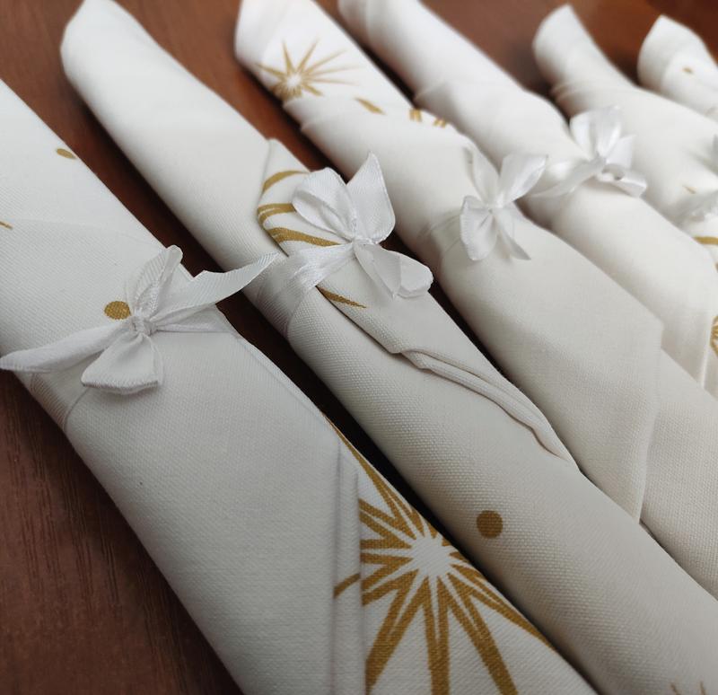 Ціна вказана за 1шт Уточнюйте наявність будь ласка Серветки з чистої бавовни - відмінна прикраса для будь-якого столу. Білий колір надає драпіровці класичний вигляд, а зоряні візерунки створюють святкову атмосферу. Якість відмінна Ручна робота Розмір 46х42 см Можливо похибка +- 1/2 см ******************************* колір Білий, принт з золотою зіркою Матеріал 100% бавовна (від екологічного землеробства) ********** Шановні покупці! Одежда и текстиль бренда Чибо идет практически вся без бумажных этикеток, за редким исключением, и со срезанными частично или полностью внутренними бирками и ярлыками с составом ткани и другой информацией. Информацию берем с официального сайта Чибо. Бирки срезают на лицензионных оригинальных вещах. Заставляет это делать сам Бренд.