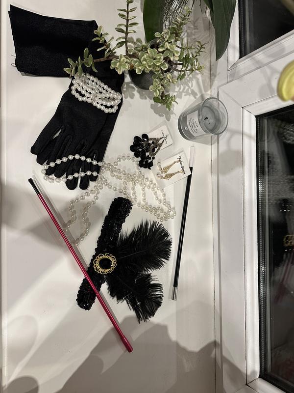Реквізити для фотосесії або вечірки в стилі «Гетсбі» або «Гострі картузи” Жилет - 250 грн Метелик -150 грн Повʼязка на голову -180 грн Прикраса на волосся -250 грн Рукавички короткі-150 грн Рукавички довгі -190 грн Намисто -200 грн Сукня 400 грн Набір (намисто, сережки, браслет)-280 грн Муштук -150 грн Віяло -170 грн