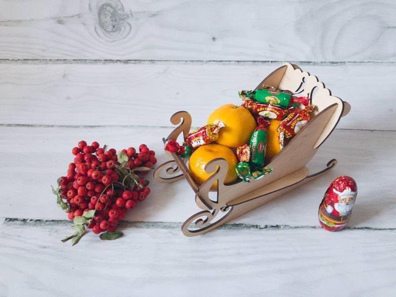 Сани новогодние для подарков 20 см, без покраски, декупажные Сани изготовлены из фанеры толщиной 4 мм. Материал: березовая фанера. Размер: высота 11 см, длина 20 см, ширина 7 см. Можно использовать как декоративный элемент интерьера, для новогодних сувениров, сладостей, как подставка под шампанское.Сани очень легко собрать, просто элементы вставляются в друг друга. Возможно окрашивание в любой цвет по желанию клиента. Продаются как в собранном, так и в разобранном виде. Різьблені сани з дерева відмінно підійдуть для кухні, в них можна покласти великі подарунки. Так само може служити декоративним елементом для фотосесій або просто прикрасить ваш інтер'єр. Підходить для декупажу .Виріб висилається в розібраному вигляді. Необхідно склеїти!!! Можливий опт.