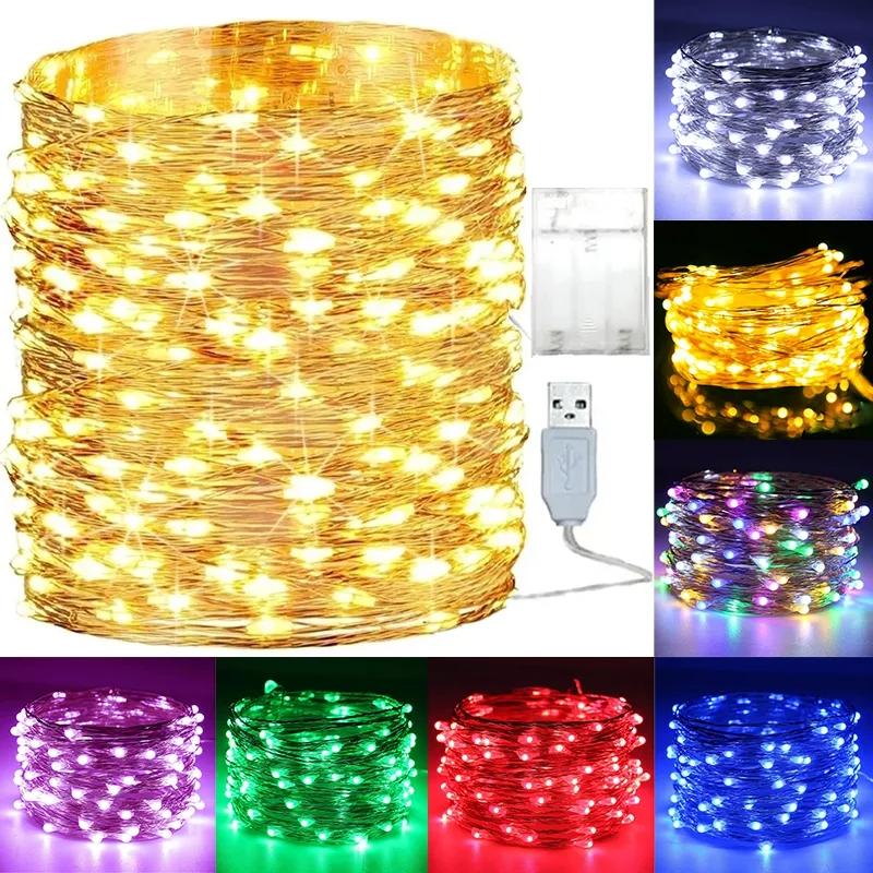 Світлодіодна гірлянда на мідній проволоці, 3 м. В наявності тепло синього кольору та різнокольорова.