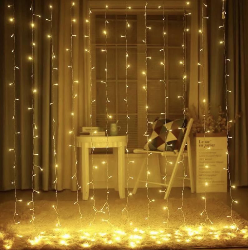 2. Штора-водоспад: ця гірлянда має унікальний дизайн у вигляді штори-водоспаду, що надає вашому приміщенню або святу дивовижного візуального впливу. Лампочки розташовуються у вигляді "водоспаду", що створює красиву завісу, що світиться.