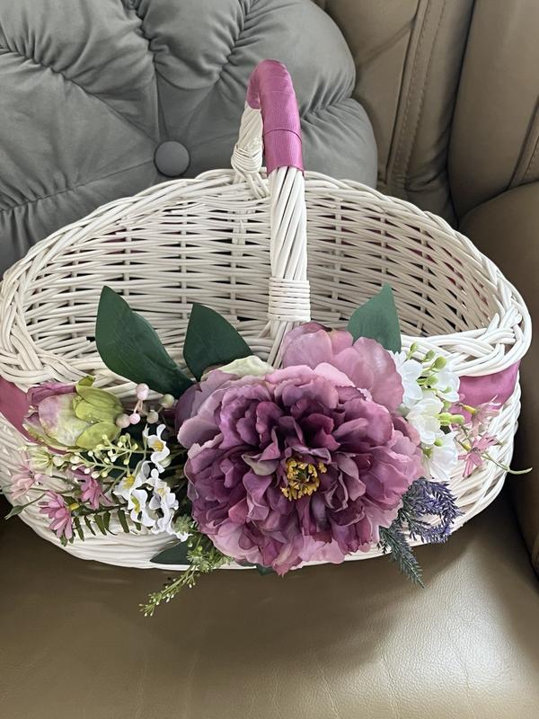 Чудовий кошик з натуральної вибіленої лози ( не фарбований ) , оздоблений стрічкою та квітковим декором преміум якості . Кошик вмісткий та зручний , прослужить вам не один рік . Розміри кошика: Довжина: 41 см Ширина: 32 см Висота: 21 см Висота з ручкою: 33 см Наявність будь ласка запитуйте , бо кошики виставлені в магазині.