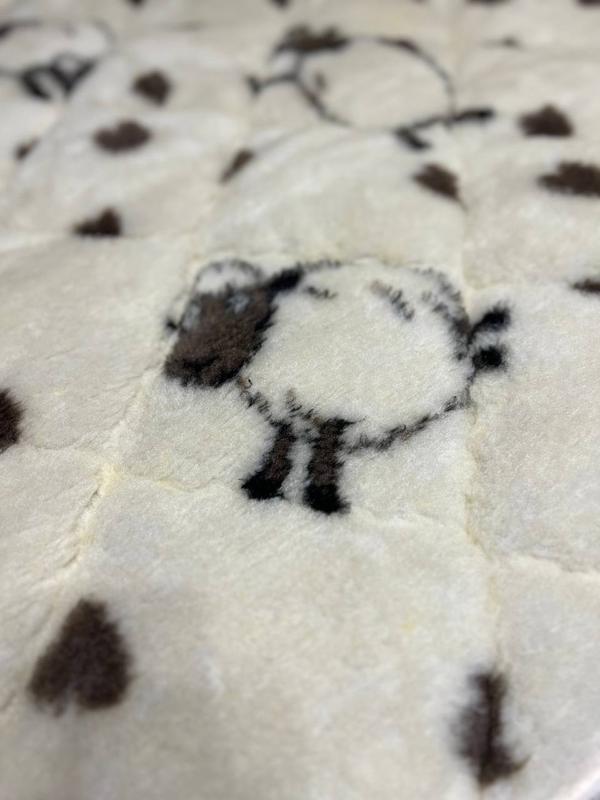 Тепла, хутряна двостороння ковдра, дуже тепла і приємна на дотик. Можна використовувати як покривало та як килим для ігор на підлозі. Хутро щільне, не вилазить. Ковдра добре прошита, не збивається і не втрачає форму. З одного боку на хутро нанесено малюнок, з іншого боку однотонна шерсть