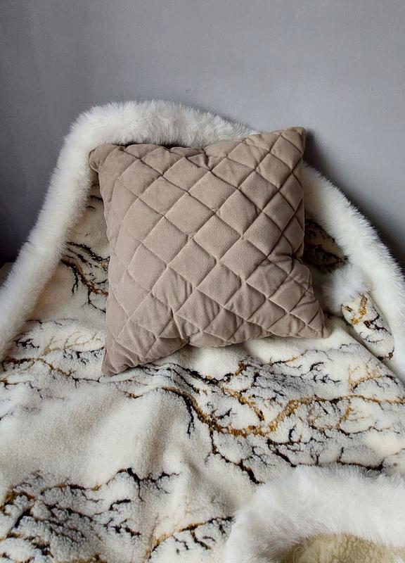 Подушка стильного бежевого кольору, прикрашена декоративною прострочкою з обох сторін.