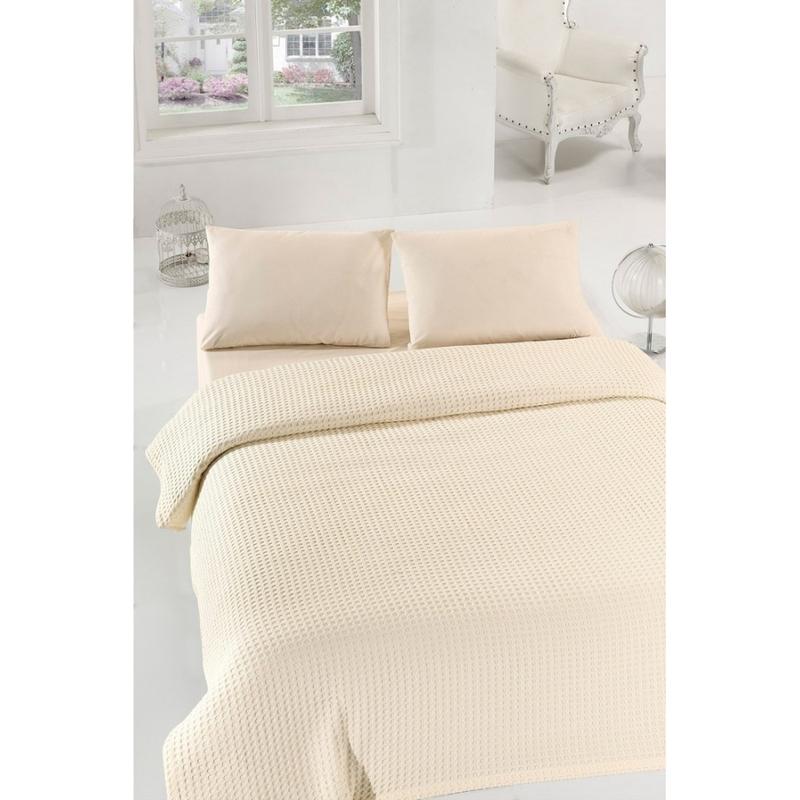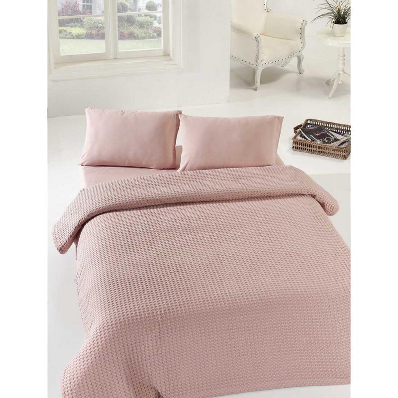 Легке покривало із вафельною структурою. Відмінно пропускає повітря, що позбавить пітливості влітку, якщо використовуєте як ковдру.