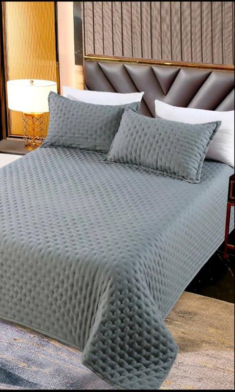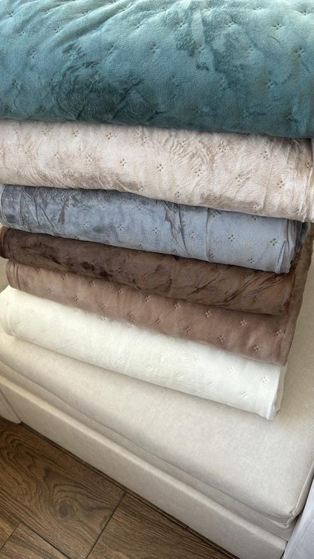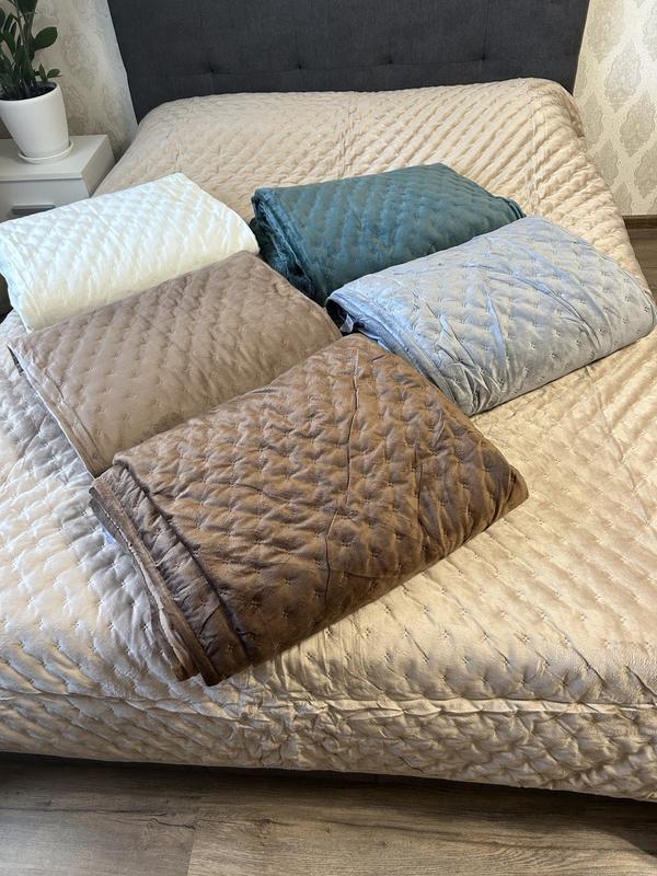 ⚜️Велюр — матеріал, який має ворсисту, оксамитову на дотик поверхню, досить щільний і дуже м'який. До складу входять натуральні та синтетичні волокна — 50% бавовна, 50% поліестер. Синтетичні нитки підвищують міцність і довговічність тканини. Натуральні волокна в складі тканини забезпечують повітропроникність і гіпоалергенність, не викликають шкірних подразнень. У процесі експлуатації покривало з велюру не сідає, мало мнеться й не розтягується.