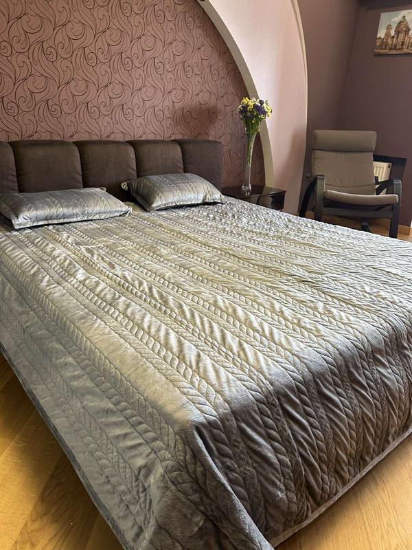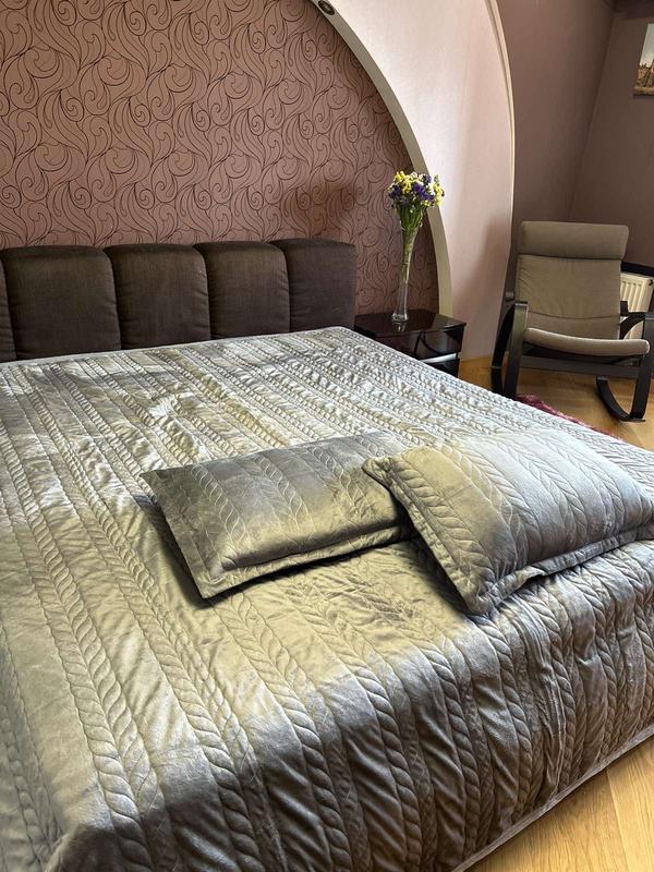 Велюрове покривало косичка Розмір покривала - 220х240 Розмір наволочок - 50х70(2шт)Тканина: верх покривала – велюр, наповнення синтепон, підкладка мікрофібра💲Ціна - 1070грн