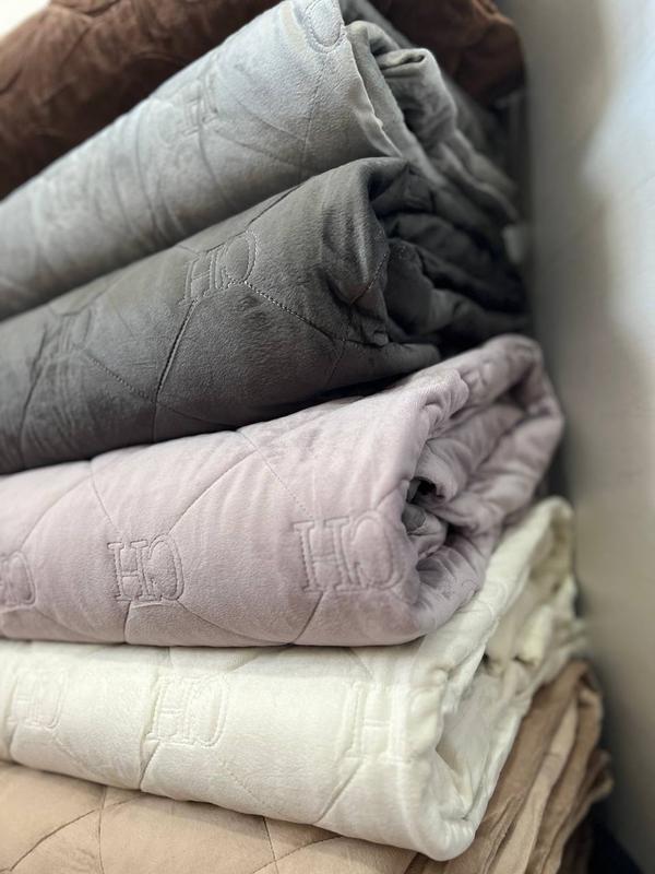 Полотно прошивається наскрізь стібками, створюючи опуклий візерунок стьобанов ковдри. Верхня частина покривала зшита з мікровелюру низ з х/б всередині - наповнювач синтепон
