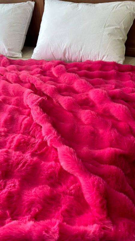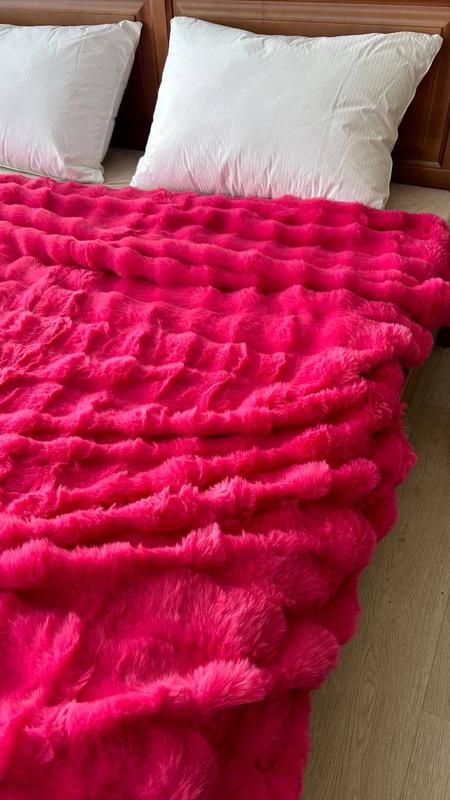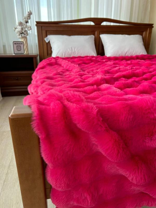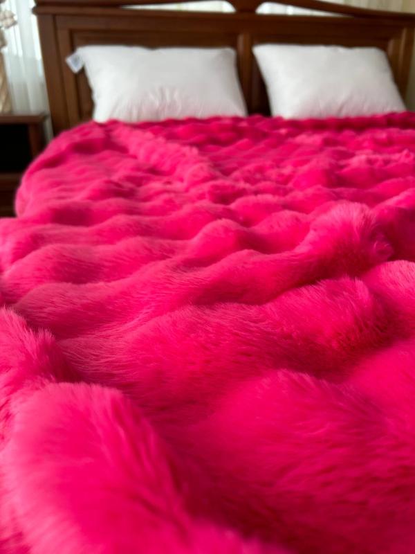 Покривало з штучного хутра з велюровою фактурою, надзвичайно м'який і приємний на дотик, досить щільний і пухнастий, відмінно зберігає тепло.