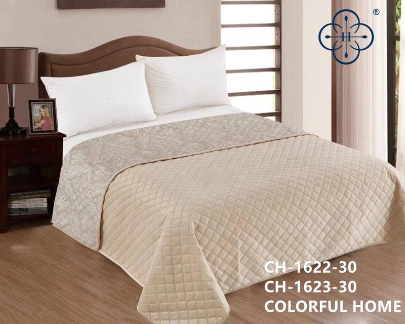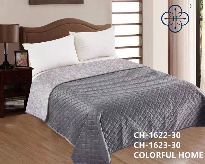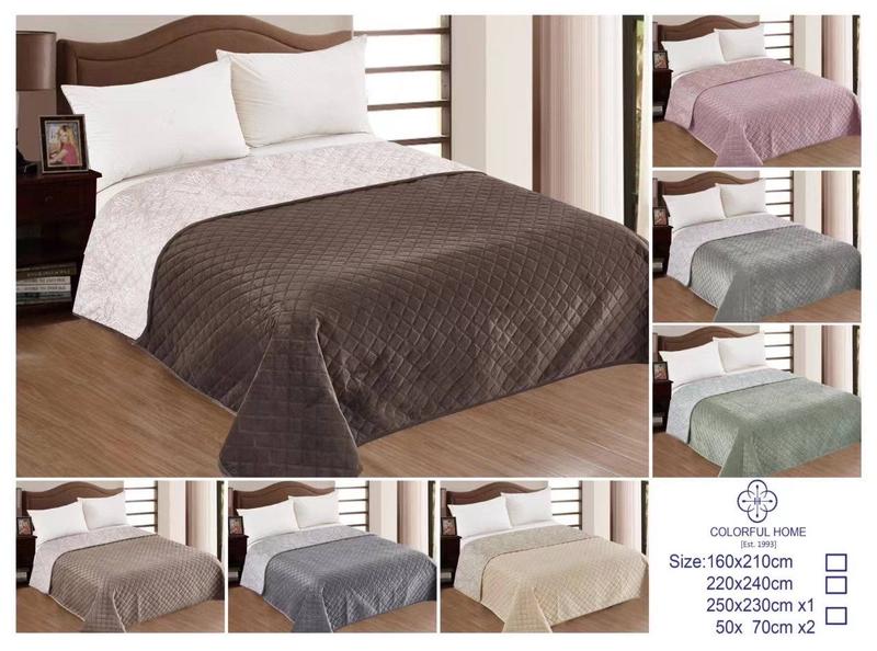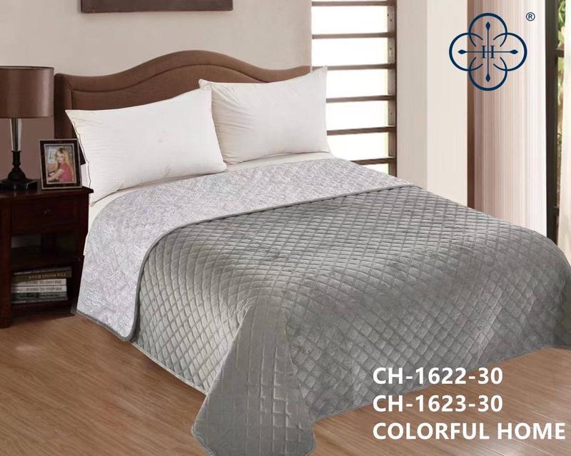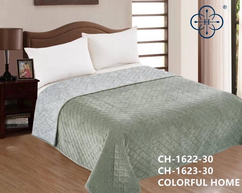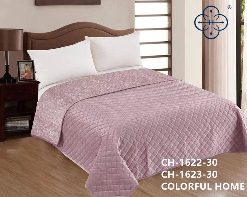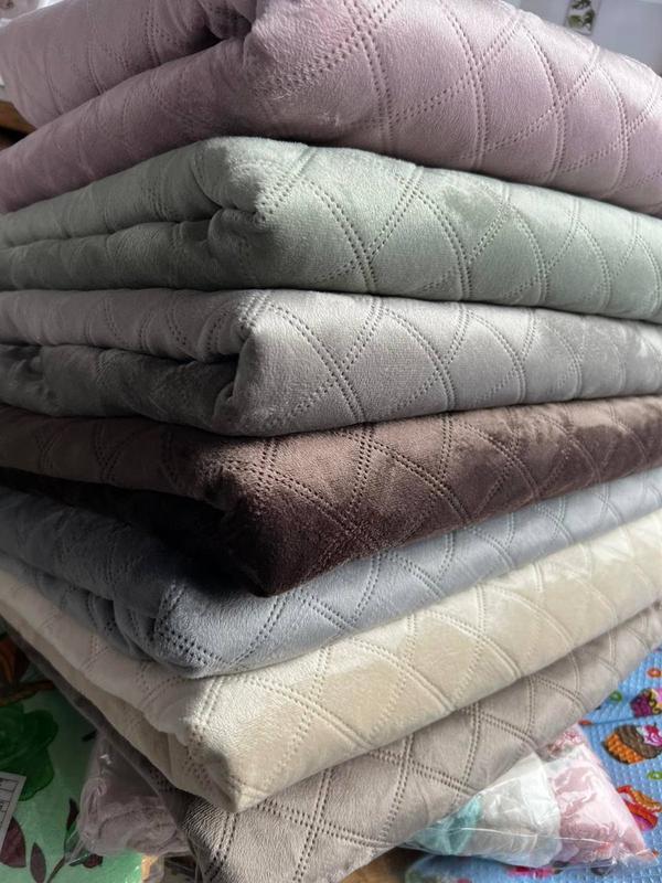 Велюр — матеріал, який має ворсисту, оксамитову на дотик поверхню, досить щільний і дуже м'який. До складу входять натуральні та синтетичні волокна — 50% бавовна, 50% поліестер. Синтетичні нитки підвищують міцність і довговічність тканини. Натуральні волокна в складі тканини забезпечують повітропроникність і гіпоалергенність, не викликають шкірних подразнень. У процесі експлуатації покривало з велюру не сідає, мало мнеться й не розтягується.