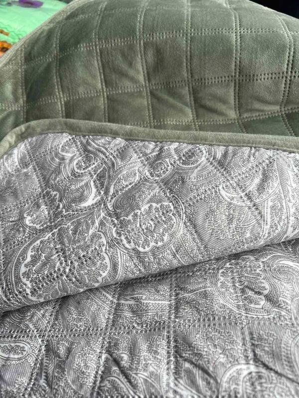 Всередині покривала невеликий прошарок синтепону, що дає змогу гарно тримати форму покривалу.