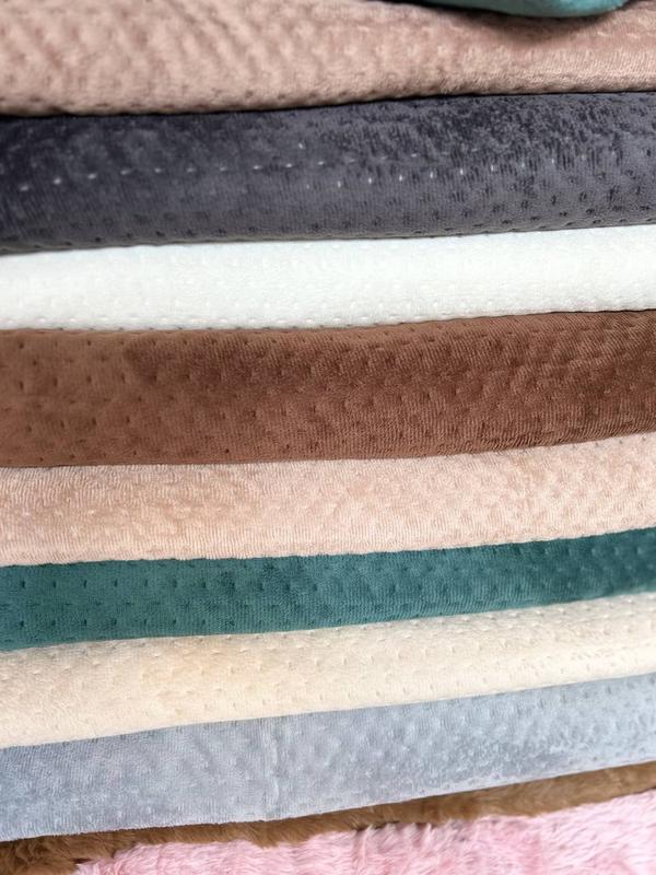 Велюр — матеріал, який має ворсисту, оксамитову на дотик поверхню, досить щільний і дуже м'який. До складу входять натуральні та синтетичні волокна — 50% бавовна, 50% поліестер. Синтетичні нитки підвищують міцність і довговічність тканини. Натуральні волокна в складі тканини забезпечують повітропроникність і гіпоалергенність, не викликають шкірних подразнень. У процесі експлуатації покривало з велюру не сідає, мало мнеться й не розтягується.