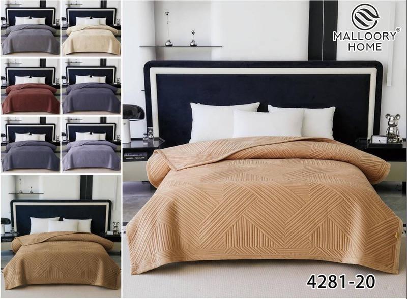 Велюр — матеріал, який має ворсисту, оксамитову на дотик поверхню, досить щільний і дуже м'який. До складу входять натуральні та синтетичні волокна — 50% бавовна, 50% поліестер. Синтетичні нитки підвищують міцність і довговічність тканини. Натуральні волокна в складі тканини забезпечують повітропроникність і гіпоалергенність, не викликають шкірних подразнень. У процесі експлуатації покривало з велюру не сідає, мало мнеться й не розтягується.
