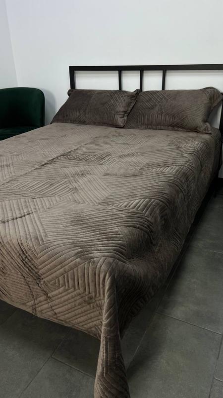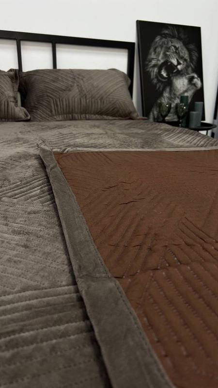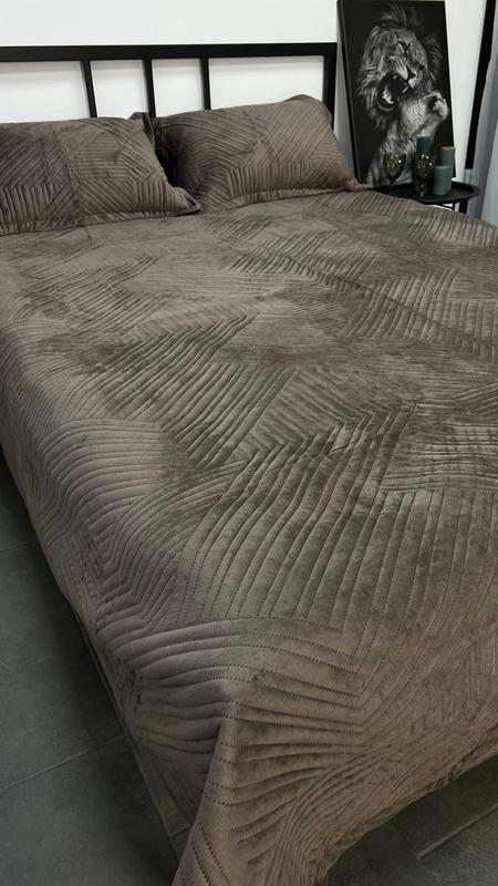 Покривало має ворсисту, оксамитову на дотик поверхню, досить щільний і дуже м'який. До складу входять натуральні та синтетичні волокна — 50% бавовна, 50% поліестер. Синтетичні нитки підвищують міцність і довговічність тканини. Натуральні волокна в складі тканини забезпечують повітропроникність і гіпоалергенність, не викликають шкірних подразнень. У процесі експлуатації покривало з велюру не сідає, мало мнеться й не розтягується.