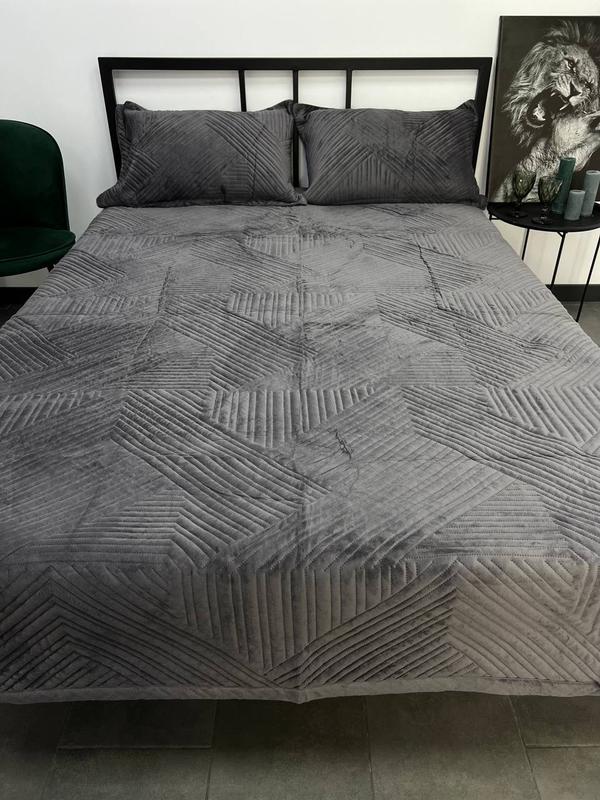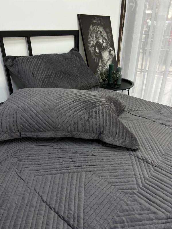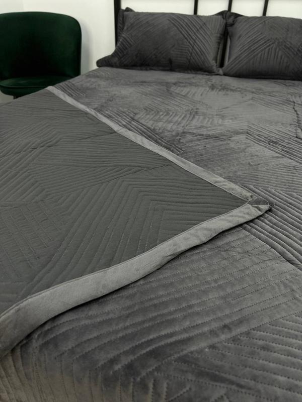 Всередині покривала невеликий прошарок синтепону, що дає змогу гарно тримати форму покривалу.