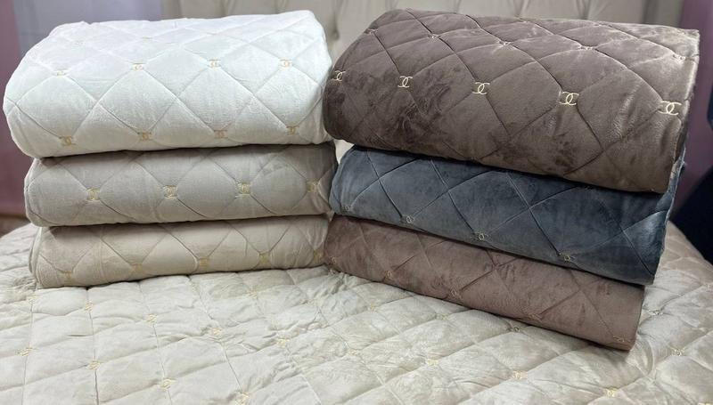 Велюр — матеріал, який має ворсисту, оксамитову на дотик поверхню, досить щільний і дуже м'який. До складу входять натуральні та синтетичні волокна — 50% бавовна, 50% поліестер. Синтетичні нитки підвищують міцність і довговічність тканини. Натуральні волокна в складі тканини забезпечують повітропроникність і гіпоалергенність, не викликають шкірних подразнень. У процесі експлуатації покривало з велюру не сідає, мало мнеться й не розтягується.